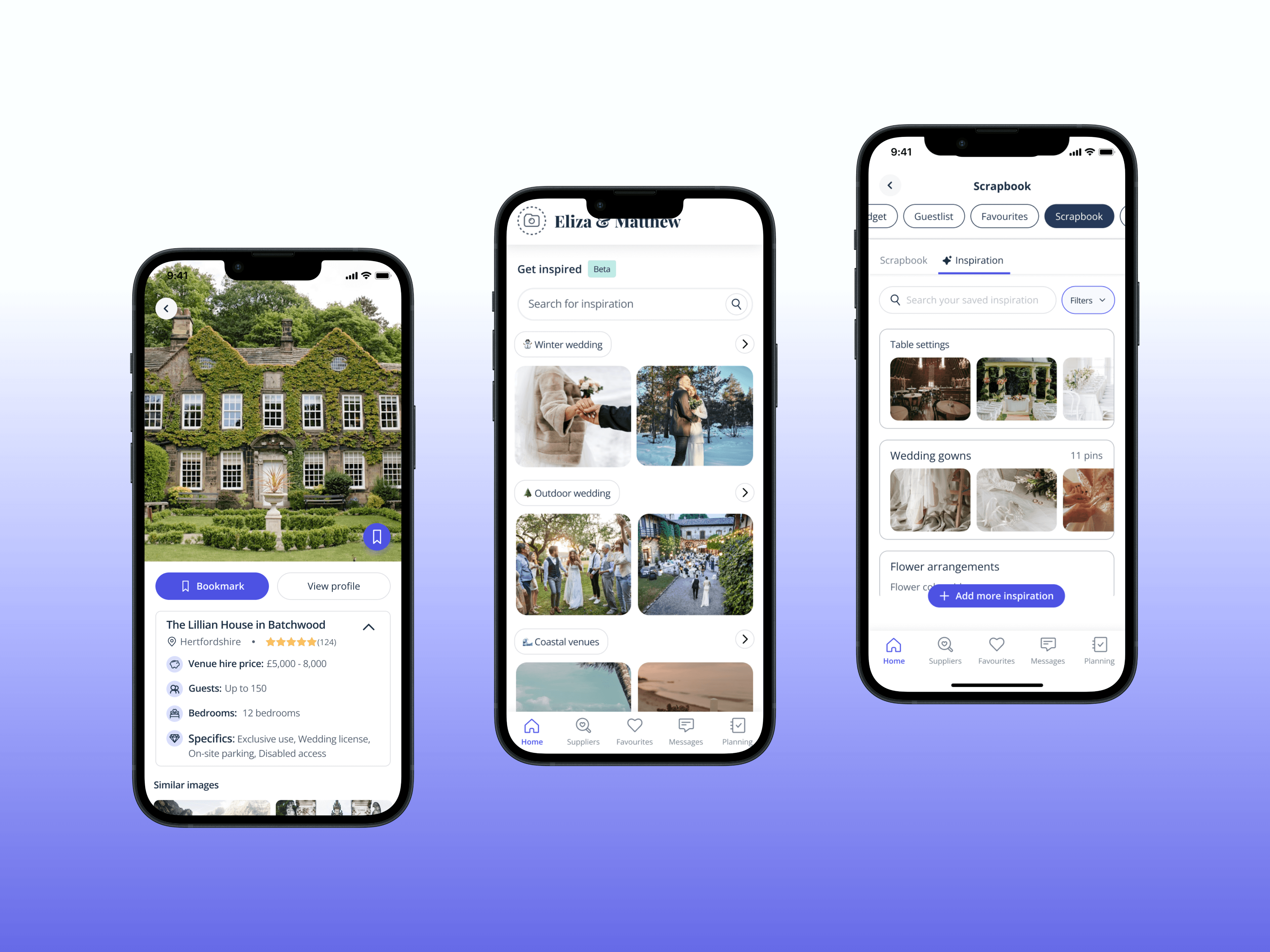 I analysed competitor patterns (Pinterest, Instagram Save features, Houzz) and conducted lightweight user testing with couples in the consideration phase. Key insights: